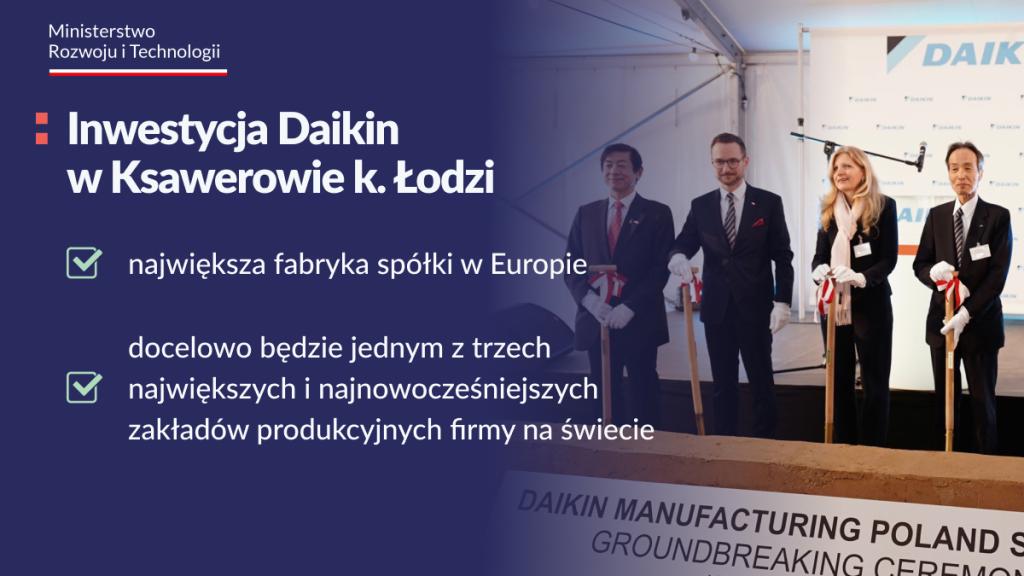 Dziś w Ksawerowie w powiecie pabianickim rozpoczęto budowę fabryki pomp ciepła Grupy Daikin Europe. Docelowo znajdzie tam pracę 3000 osób do 2030 roku. W uroczystości inaugurującej inwestycję wziął udział minister rozwoju i technologii Waldemar Buda.