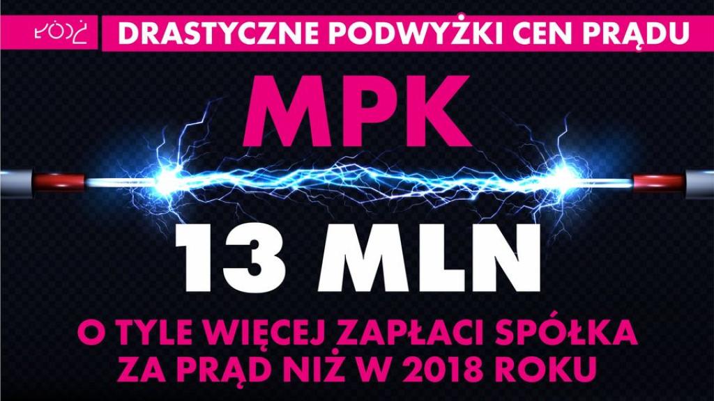 Tymczasem miasto w ramach Łódzkiej Grupy Zakupowej prądu szacuje wzrost kosztów samorządu na poziomie 12 mln zł w skali roku, a tylko MPK-Łódź aż o 13 mln zł. Podobnie znaczący wzrost kosztów energii elektrycznej podają prezesi miejskich spółek: ZWiK o 2 mln zł, Aquapark "Fala" o 800 tys. zł, a MAKiS o 500 tys. zł.