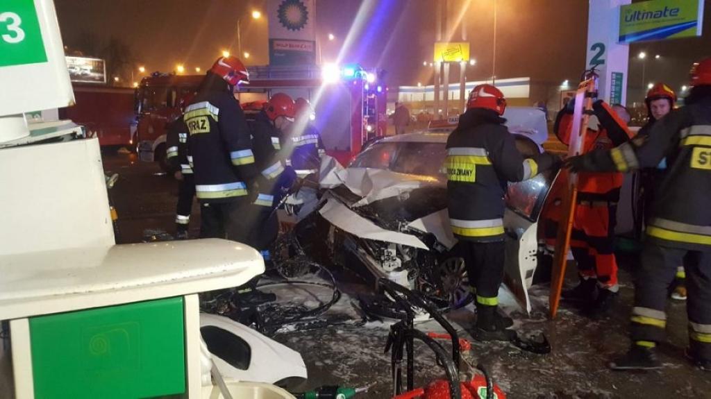 Na ruchliwej miejskiej dwupasmówce 17-letnia dziewczyna kierująca taksówką wjechała w stację benzynową rozbijając pojazd i uszkadzając wyposażenie stacji. Nie miała prawa jazdy i była nietrzeźwa. Na szczęście nie doszło do tragedii.
