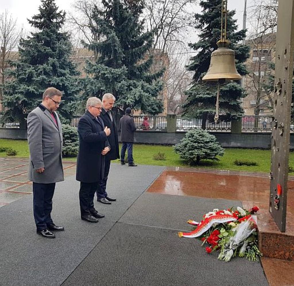 W trakcie wizyty w Ministerstwie Obrony Narodowej minister Paweł Soloch oddał też cześć ukraińskim żołnierzom poległym na wojnie z Federacją Rosyjską pod Dzwonem Pamięci i odwiedził Izbę Pamięci.