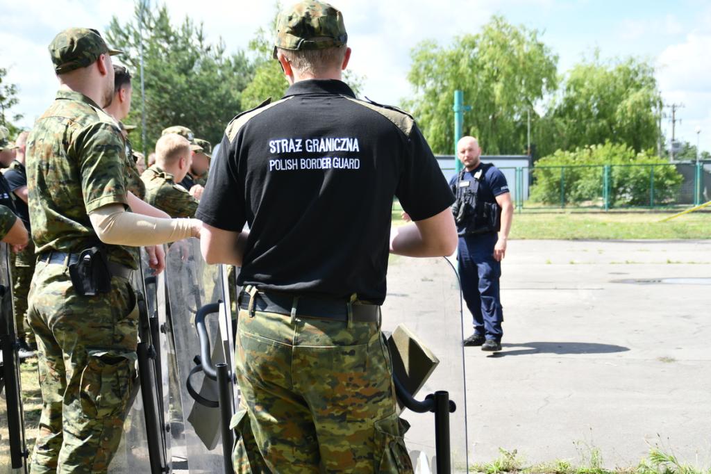 Policyjni instruktorzy z Oddziału Prewencji Policji w Białymstoku szkolili żołnierzy Wojska Polskiego oraz strażników granicznych z taktyki działania pododdziałów zwartych. Omawiali potencjalne zagrożenia, z jakimi mogą spotkać się podczas służby na granicy polsko-białoruskiej. Szkolenia mają charakter cykliczny i obejmować będą wszystkich strażników granicznych i żołnierzy Wojska Polskiego kierowanych na granicę..