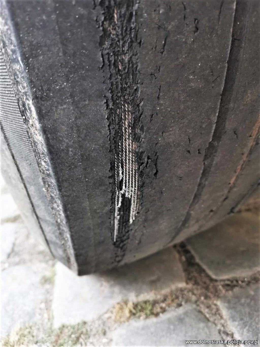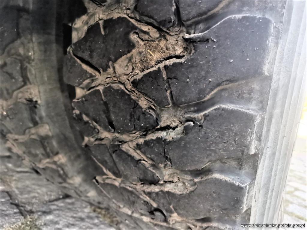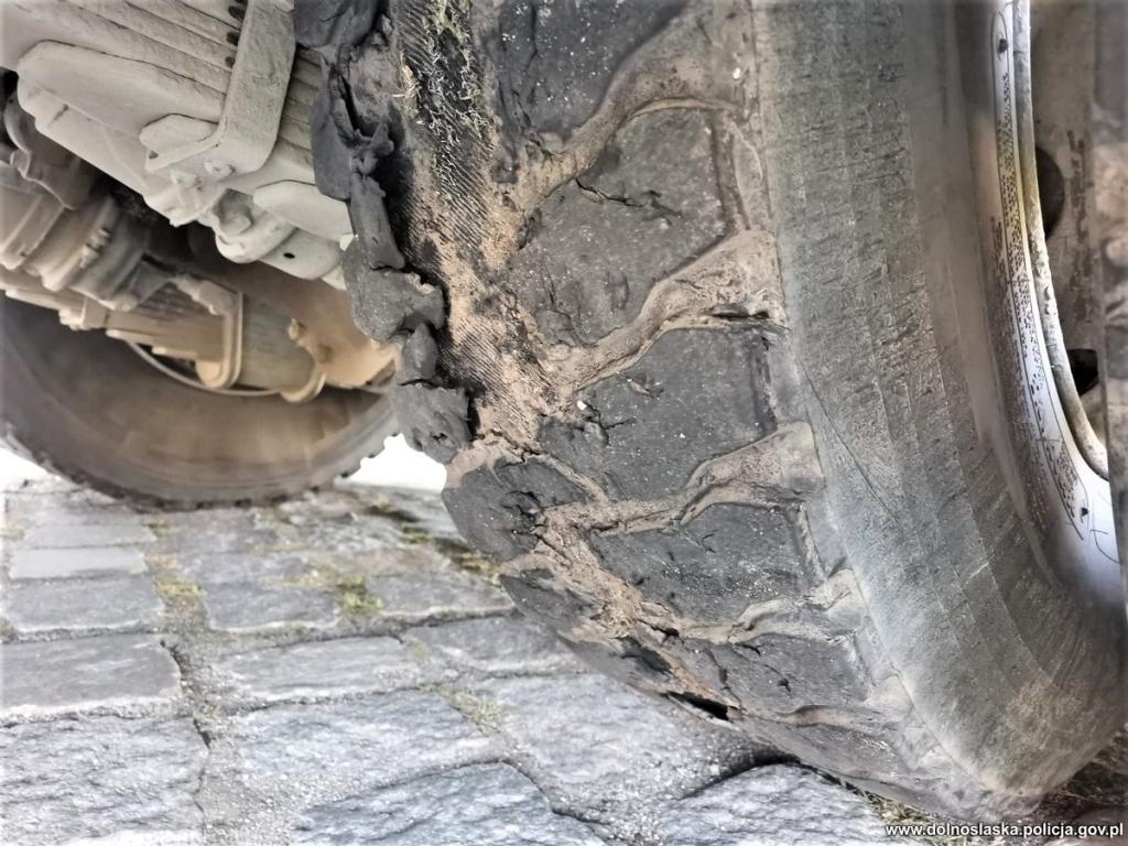 W toku wykonywanych czynności związanych z kontrolą drogową policjanci ujawnili znacznie zużyty i zniekształcony bieżnik opony. Opony wręcz przypominały "slick'i" używane w pojazdach Formuły 1. Jednak ciężarówka, to nie wyścigowy bolid, a droga wojewódzka to nie słynna włoska Monza.