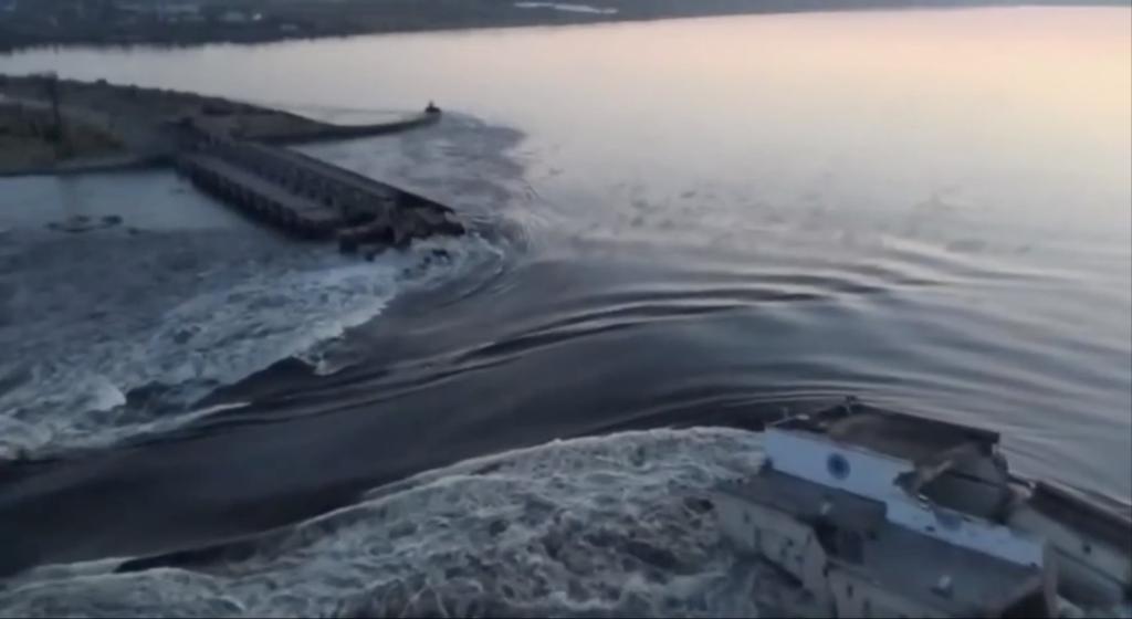 Rosjanie w okupowanej Nowej Kachowce zniszczyli zaporę wodną na spiętrzeniu rzeki Dniepr. Wielu miejscowościom grozi zalanie.