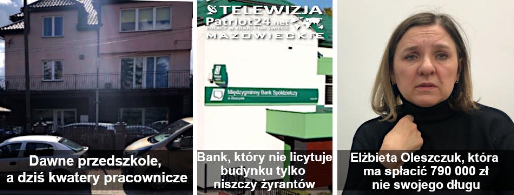 Prezentujemy wywiad z Elżbietą Oleszczuk z Siedlec, której życie rodzina zamieniło się w koszmar. Bo prezes Międzygminnego Banku Spółdzielczego w Zbuczynie Dariusz Jasiński postanowił zlicytować ją, męża i jeszcze jedna małżeństwo żyrantów za dług młodej dłużniczki zabezpieczony hipoteka budynku na rzecz tego banku!