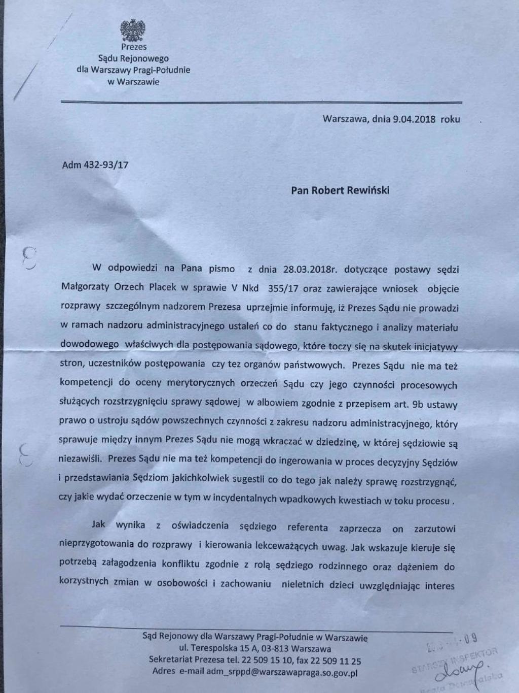 Dziś o pomoc w sprawie skandalicznego procedowania przez sędzię Małgorzatę Orzech-Placek, ojciec 10-latki zwrócił się do Ministra Sprawiedliwości Prokuratora Generalnego Zbigniewa Ziobro.