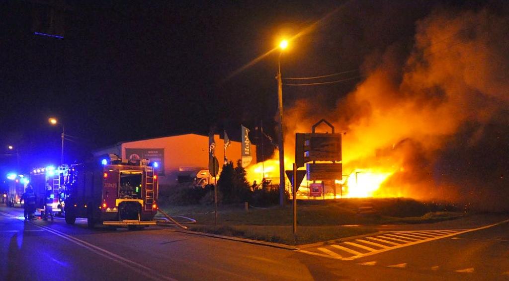 W sobotę krótko po godzinie 22:30 w Mścicach wybuchł pożar. Ogień strawił kilkanaście przyczep campingowych i dostał się na budynek gospodarczy.