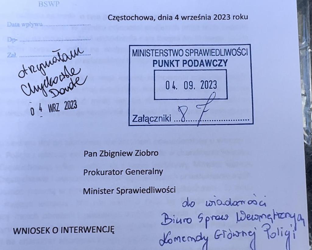 Ich stanowisko spotkało się z dużym zrozumieniem dyżurującego w ministerstwie urzędnika. Zarekomendował złożenie pisma skierowanego do Zbigniewa Ziobro w biurze podawczym wraz z załącznikami.