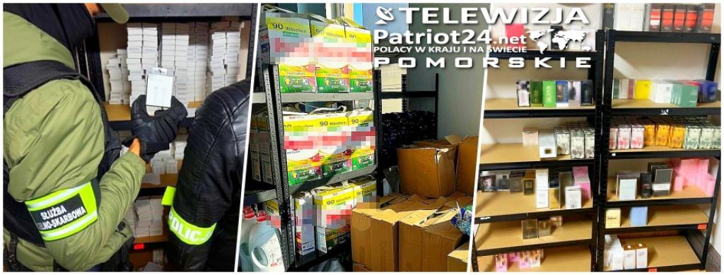 Funkcjonariusze Wydziału Kryminalnego Komendy Powiatowej Policji w Pucku realizując własne ustalenia w dniu 21 października 2024 roku weszli przy współudziale funkcjonariuszy Drugiego Działu Realizacji Pomorskiego Urzędu Celno - Skarbowego w Gdyni do hal magazynowych w Żelistrzewie gdzie ujawnili i zatrzymali około 30 ton produktów w postaci płynów do prania i płukania, kawy, perfum oraz ładowarek do telefonów z podrobionymi znakami towarowymi znanych i popularnych na polskim rynku marek.