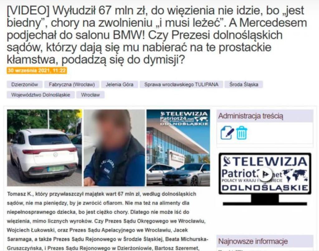 Kiedy ten skandal nagłośniliśmy między innymi u Ministra Sprawiedliwości Prokuratora Generalnego Zbigniewa Ziobro, dolnośląskie sądy zaczęły szczegółowo analizować maskarady Tomasza K.
