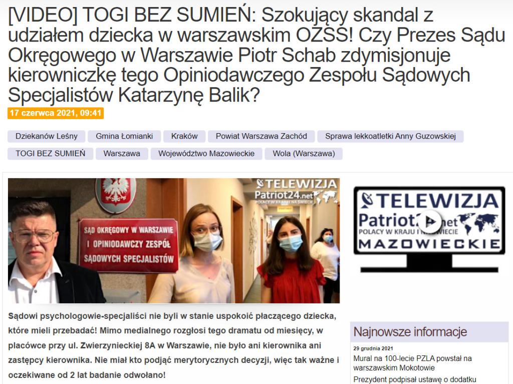 Po programie Elżbiety Jaworowicz do akcji wkroczyła Senator Lidia Staroń. Podjęła interwencję, w której wypunktowała indolencję, niekompetencję i przekroczenie uprawnień przez sędziego Tomasza Jaskłowskiego. Chodzi między innymi o złożenie przez niego zawiadomienie do prokuratury o rzekomym przestępstwie które miał popełnić Bartłomiej Guzowski razem z naszym redaktorem naczelnym Robertem Rewińskim podczas nieudolnie przygotowanego badania w Opiniodawczym Zespole Sądowych Specjalistów (OZSS) podległym prezesowi Sądu Okręgowego w Warszawie (film poniżej).