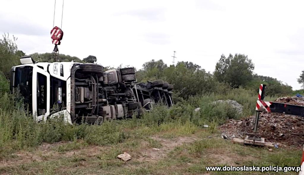 Wczoraj funkcjonariusze Komendy Powiatowej Policji w Strzelinie jako pierwsi dotarli na miejsce i zatrzymali mężczyznę, mieszkańca powiatu wrocławskiego, podejrzanego o przestępstwo. Kierowca przyjechał na pole znajdujące się w obrębie miejscowości Piotrowice w gm. Strzelin i wysypał na nim odpady w postaci zmielonego plastiku oraz metalu. Jednak podczas wykonywania tej czynności, w wyniku niezachowania środków ostrożności, ciągnik siodłowy wraz z naczepą osunął się do rowu, co spowodowało wywrócenie całego składu.