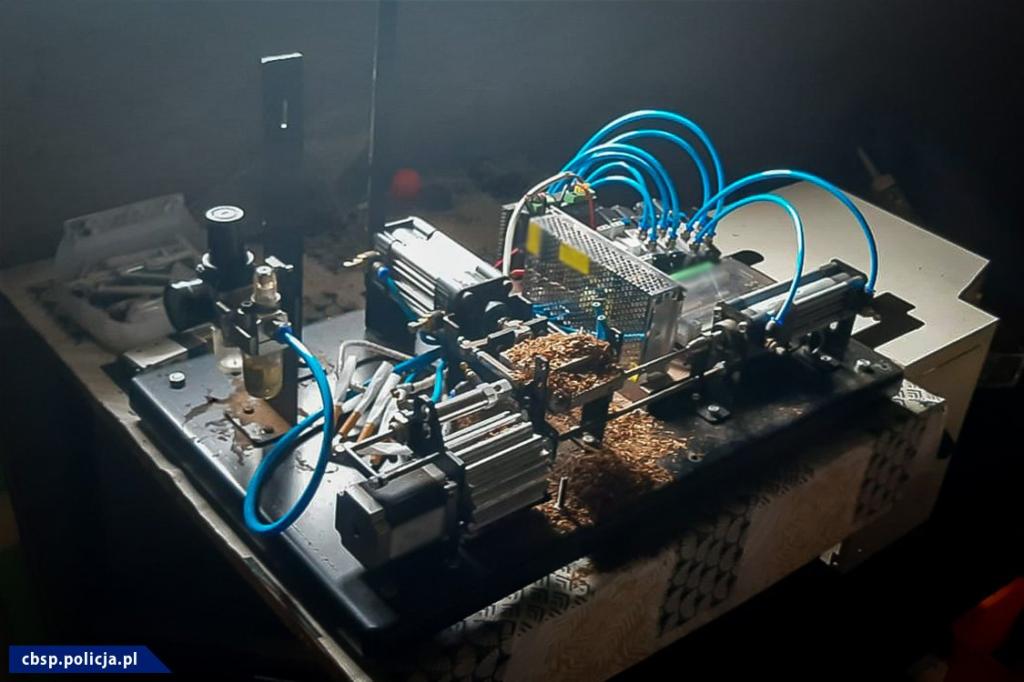 Policjanci z Zarządu w Radomiu Centralnego Biura Śledczego Policji dotarli do informacji z której wynikało, że w okolicach Siedlec może być prowadzona nielegalna produkcja papierosów. Po dokładnym zweryfikowaniu okazało się, że na terenie jednej z posesji w powiecie łosickim dochodzi do nielegalnego procederu. Tam zlikwidowali nielegalną fabrykę papierosów, a także miejsce pakowania wyrobów tytoniowych. Łącznie w pomieszczeniach znajdowały się 4 linie służące do produkcji papierosów oraz jedna linia do ich pakowania. Funkcjonariusze przejęli także wyprodukowane papierosy, w tym niektóre z naniesionymi symbolami znanej marki tytoniowej. Dodatkowo zabezpieczono również tytoń i poligrafię niezbędną do produkcji wyrobów tytoniowych. Wartość urządzeń wchodzących w skład zlikwidowanych linii produkcyjnych będzie precyzyjnie wyceniona przez biegłego, ale już z wstępnych szacunków wynika, że jest to kwota rzędu co najmniej kilkuset tys. zł. W działaniach uczestniczyli także funkcjonariusze Mazowieckiego Urzędu Celno-Skarbowego (KAS).
