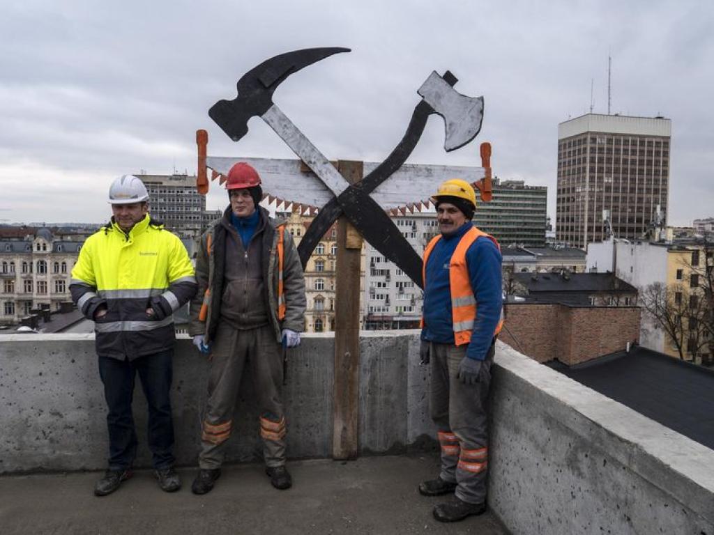 Wiecha składająca się z typowych narzędzi ciesielskich zdobi od dziś dach biurowca Teal Office powstającego w strefie OFF Piotrkowska. Oznacza to, że zakończył się ważny etap budowy tego obiektu.