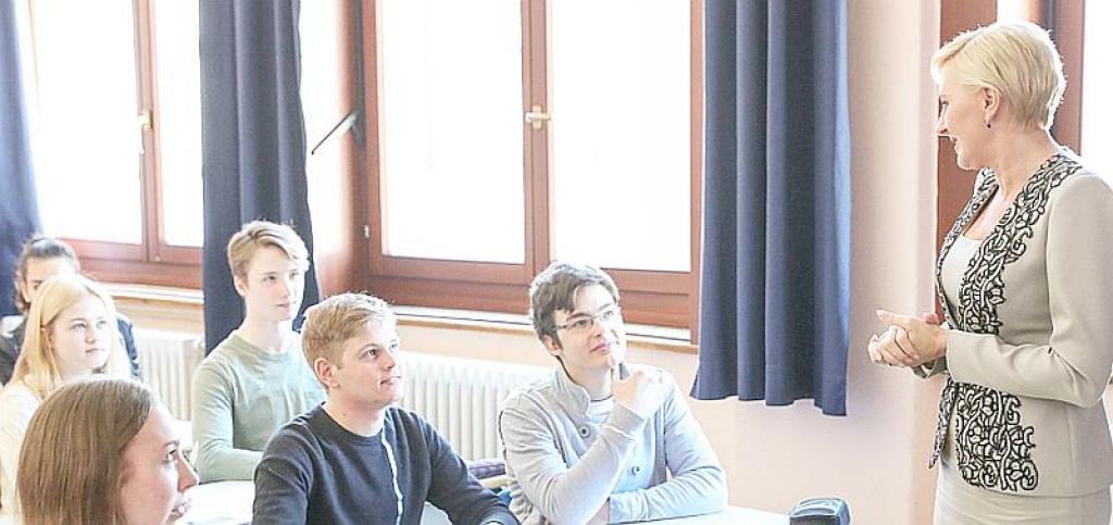 Następnie Agata Kornhauser-Duda wzięła udział w lekcji języka niemieckiego w jednej z grup, która realizuje program DSD II (Deutsches Sprachdiplom II).