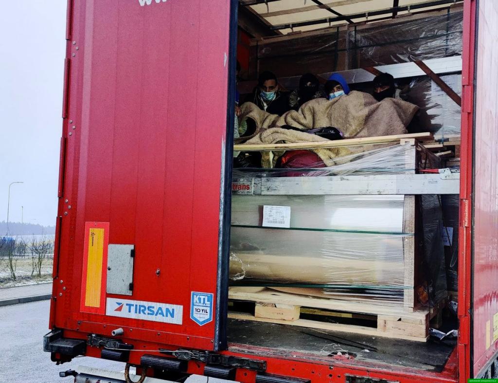 Na trasie S8 niedaleko miejscowości Łask w woj. łódzkim funkcjonariusze Straży Granicznej, Policji oraz KAS, po zerwaniu plomb celnych, w części ładunkowej ciężarówki znaleźli pięciu młodych cudzoziemców. Byli ukryci między paletami z transportowaną folią.