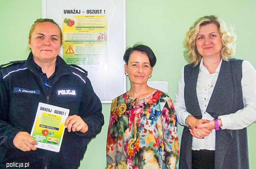 Policjantki z Zespołu ds. Profilaktyki Społecznej, Nieletnich i Patologii spotkały się z przedstawicielami ZUS w Zielonej Górze, aby przekazać plakaty i ulotki zawierające ostrzeżenia przed działalnością oszustów i domokrążców okradających seniorów. Materiały informacyjne rozmieszczone zostały w salach obsługi klientów oraz w poczekalniach budynków ZUS znajdujących się w Zielonej Górze.